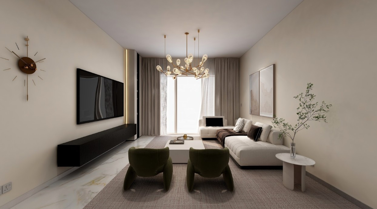 The residences are part of a modern complex featuring two harmoniously positioned buildings set within a 2,400 m² landscaped area.