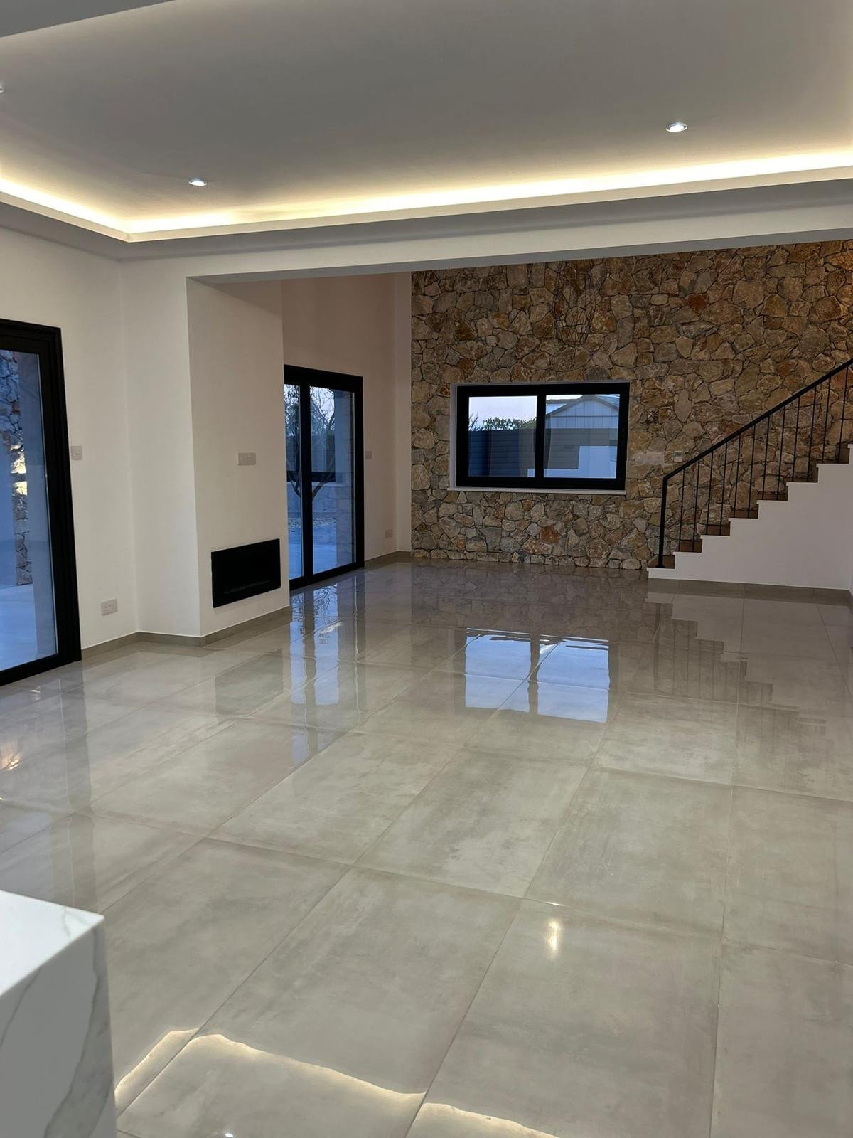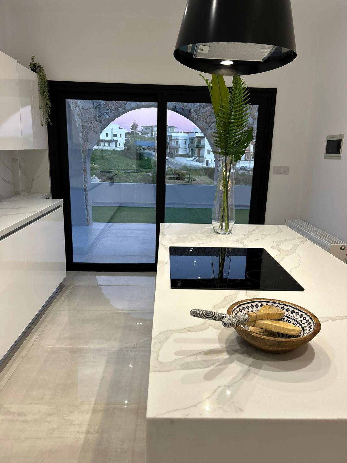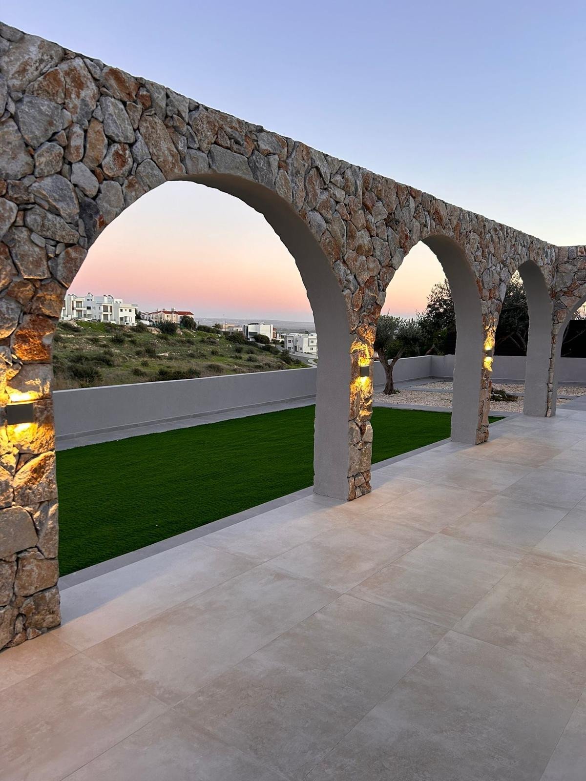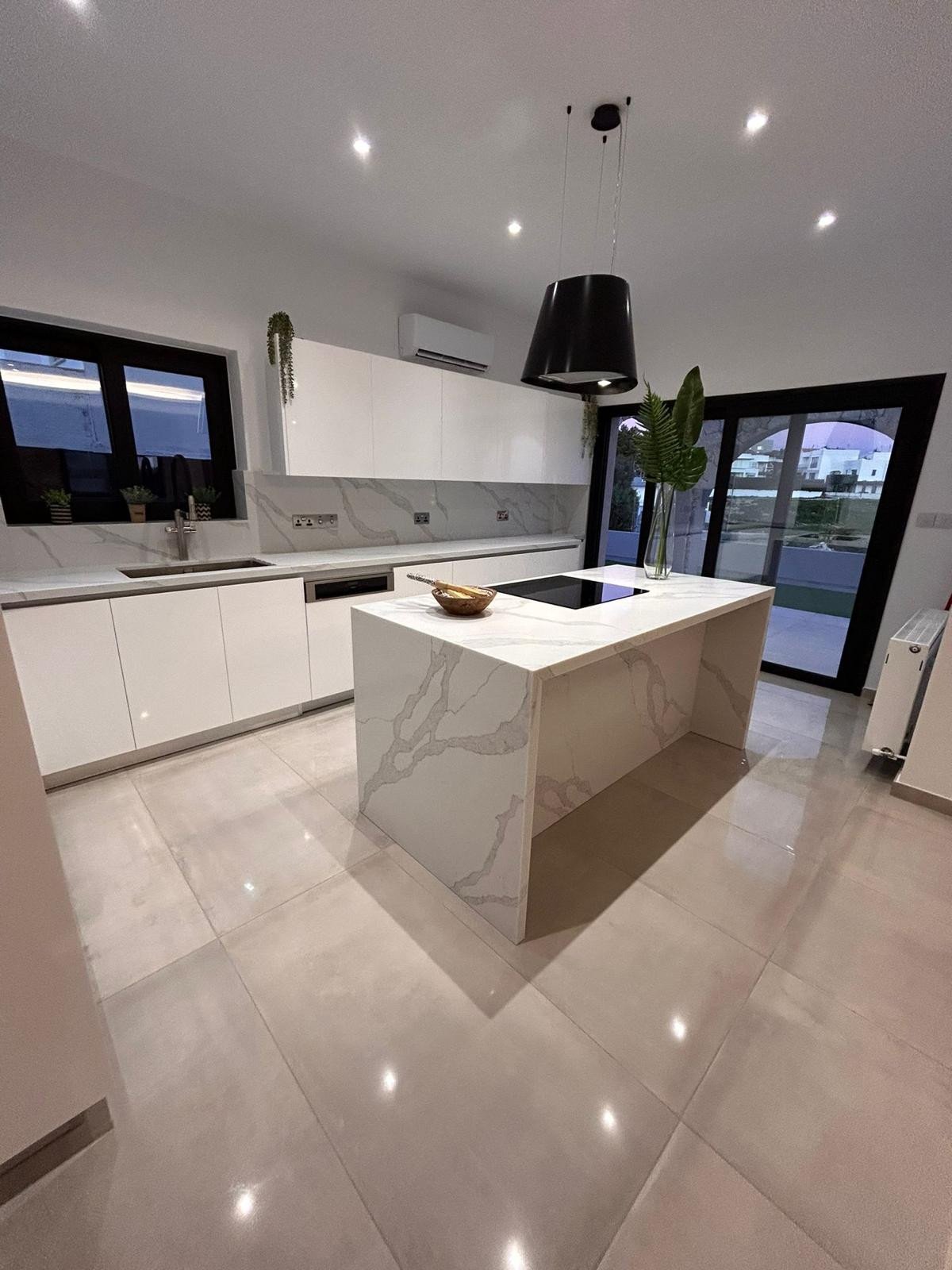 A unique internal feature rock wall and external arches create an authentic Cypriot design whilst an elegant open plan kitchen/ living area brings the cool element to this stylish home.